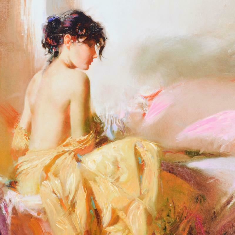 "Royal Beauty" is a hand embellished limited edition giclee on canvas by Pino (1939-2010) numbered and hand signed. Includes Certificate of Authenticity. Measures approx. 40" x 30" (image). This piece is not stretched.
