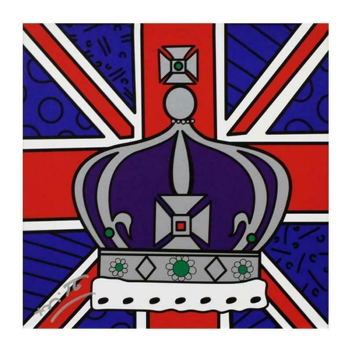 "Royal Crown" is a limited edition giclee on canvas with by Romero Britto. The piece comes hand signed by the artist and is authenticated en verso with the official Britto stamp. Measures approximately:16" x 16" This item requires special handling and may have a longer than usual turnaround.