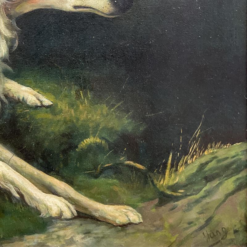 "Russian Wolfhounds" is an original oil painting on canvas by Yang, hand signed by the artist. This piece comes framed. Includes Letter of Authenticity. Measures approx. 38" x 47" (frame), 29" x 38" (image). There is some wear on the frame.