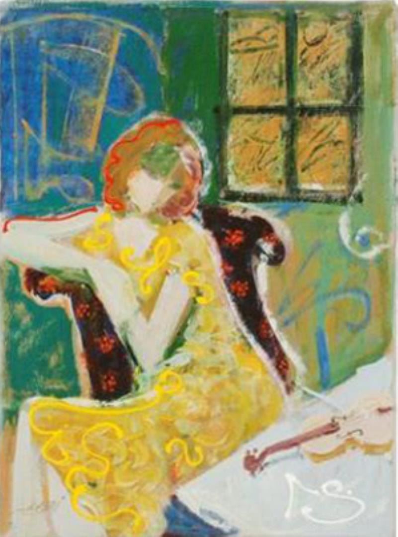 Artist: SABZI Title: COMPOSITION WITH VIOLIN Medium: Serigraph on Fine Art Paper Signature: Hand-signed by the Artist Limited Edition: 30 Image Size: Approximately 18 inches x 14 inches Framed: Unframed Details: This work comes with a Certificate of Authenticity Biography: Sabzi's early works were primarily realistic, exploring the historical and cultural themes of his homeland. His departure from Iran during the Khomeini regime brought him to Germany and then the United States. This exile provided him the opportunity to explore new artistic influences, and he began to work in abstract and figurative styles.