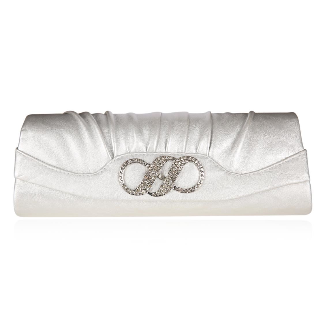 A SCP Evening Bag. Silver with detailed embellished design and chain strap.
