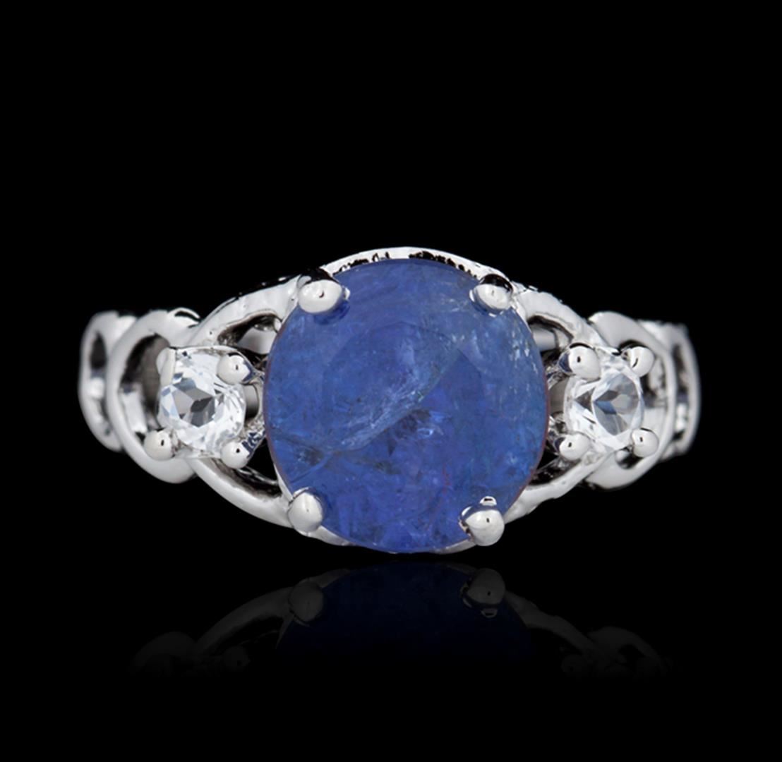 One ring featuring: Sterling silver weighing 3.80 grams containing one tanzanite with a total weight of 2.90 ct and two white topaz.