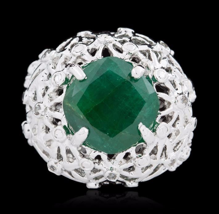 One ring featuring: 21 grams of silver, (1) emerald with a total weight of 9.68ct and white topaz.