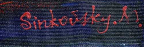 SINKOVSKY **RIDE THE WAVE** ORIGINAL ACRYLIC . Artist: Natalia Sinkovsky - Title: Ride the Wave - Medium: Original Acrylic on Canvas - Signature: This one-of-a-kind work is hand-signed by the artist at the bottom of the image - Image Size: Approximately 12 inches x 12 inches - Framed: Unframed and Unstretched Canvas - Details: This work comes with a Certificate of Authenticity - Biography: Natalia Sinkovsky was born in March 11 1959 in Semipalatinsk, Kazakhstan. She studied music and art throughout her childhood and teenage years. In 1976, she enrolled in the Ust-Kamenogorsk Building Institute (department of Architecture), and graduated in 1981 with a second (Master's) degree in Architecture. Later she worked as a professional architect in various bureaus. - In 1995, Natalia repatriated to Israel, defended her diploma and finished IT courses for architects. She worked as an architect, designing buildings, villas, and interiors. She has been professionally working as a designer, sculptor and artist, as well as participating in exhibitions, since 2002. - Warranty: Item GUARANTEED to be as described