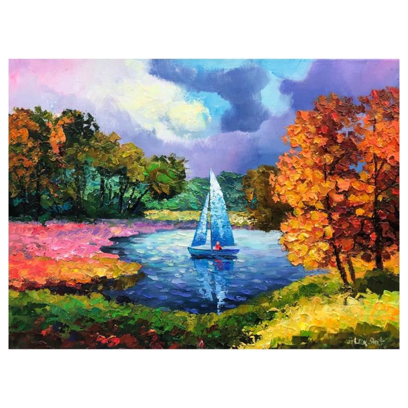 "Sail, Matching The Sky" is an original oil painting on stretched canvas by Alexander Antanenka. Hand signed by the artist, the piece comes with a letter of authenticity. Measures approximately 18" x 24" (image). There may be scuffs on the edges and corne