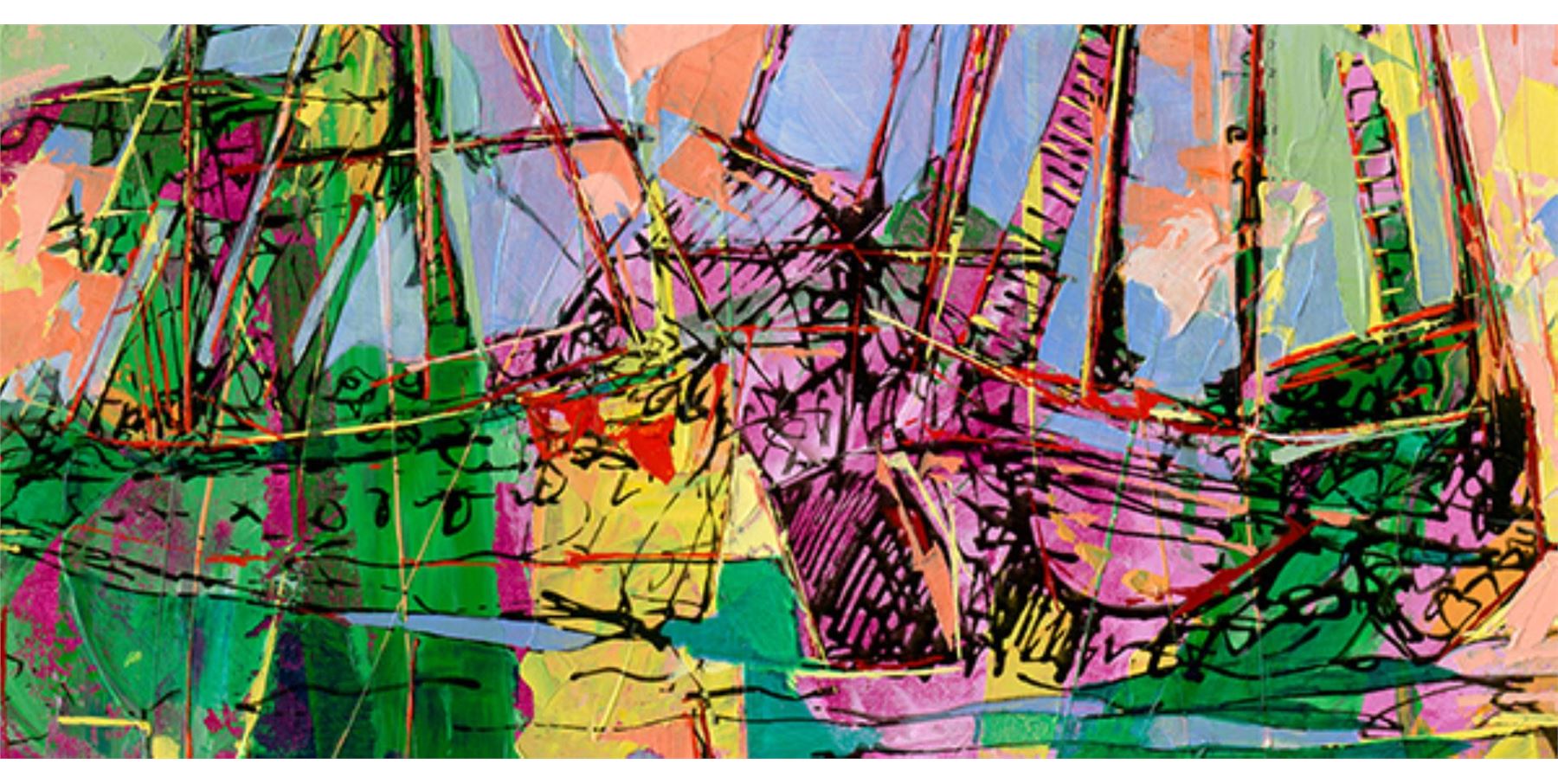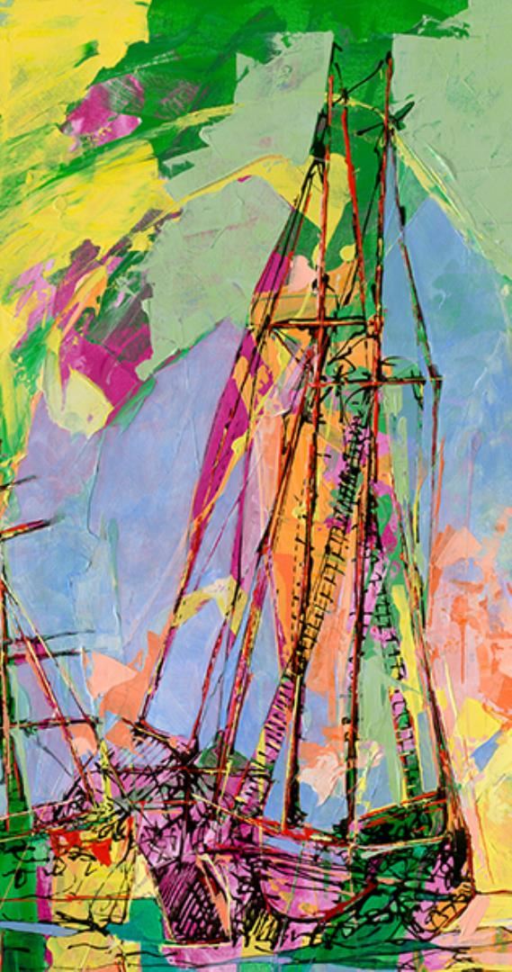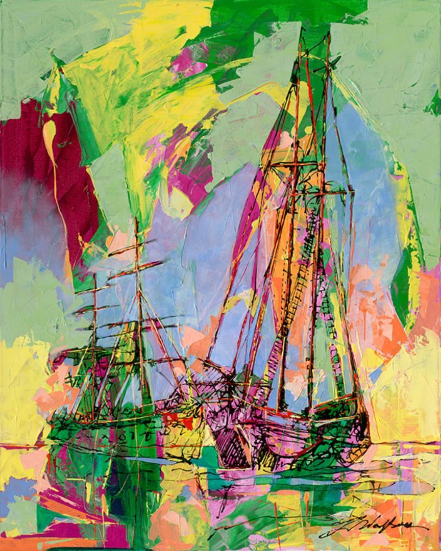 Bright and Colorful original on canvas. Hand signed byWolfson. This artwork comes stretched. Art 24x30