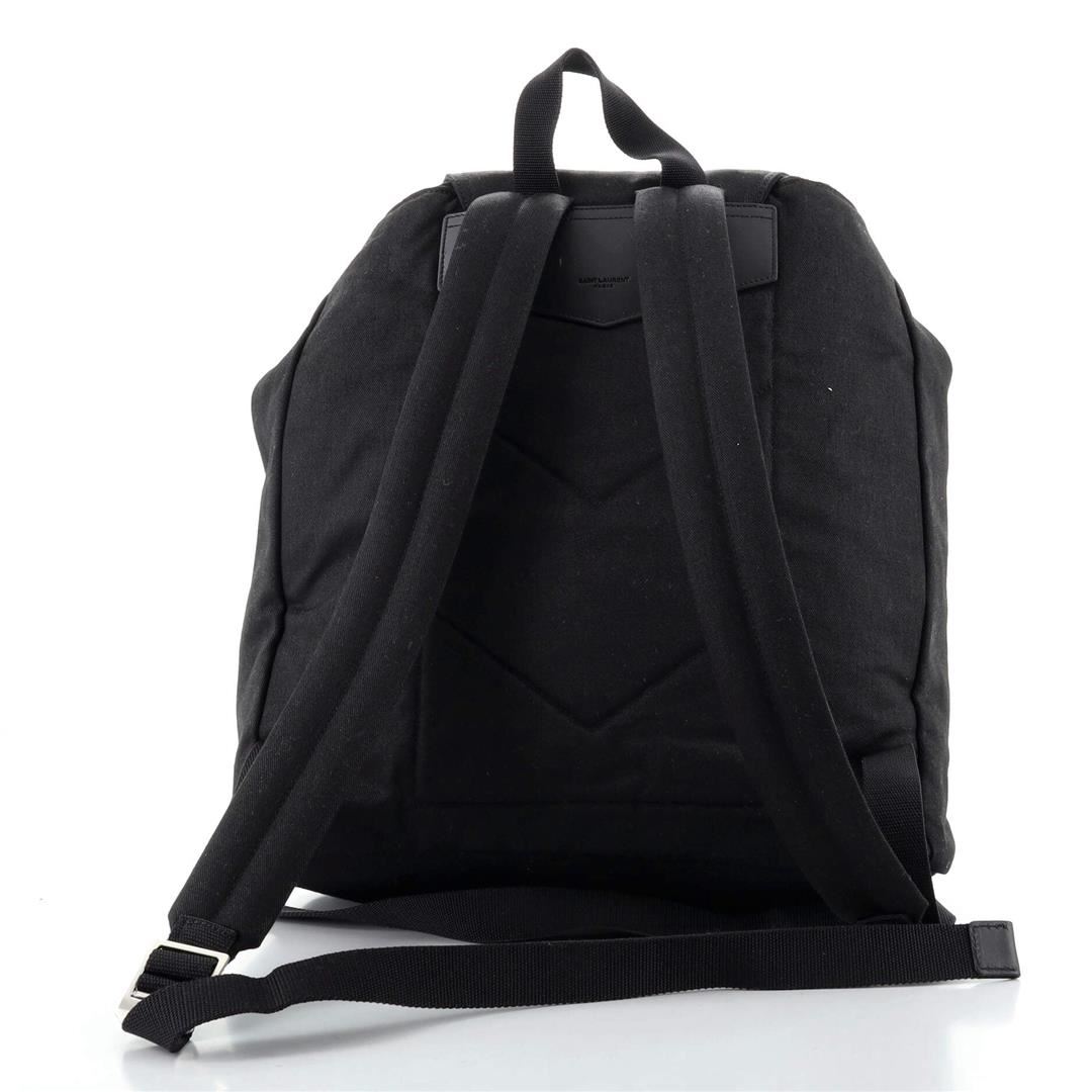 Saint Laurent Black Canvas Noe Large Backpack Condition Details: Minor wear on exterior, scuffs on leather trims, scratches on hardware. MMeasurements: Height 15", Width 15", Depth 6", Strap Drop 8-19"