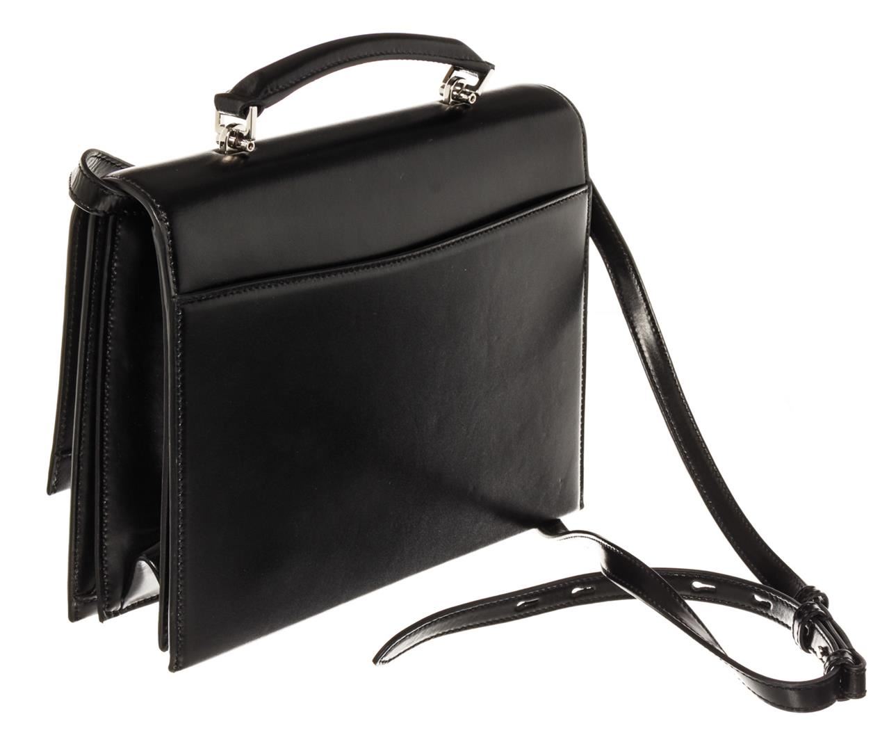 One Saint Laurent Black Leather Babylone SHW Top Handle Bag. Item is sold AS-IS. All available information is listed in the description and shown in the photo. Black leather Saint Laurent Babylone Top Handle bag with silver-tone hardware, single flat handles & single adjustable shoulder strap, single exterior pocket, black leather lining & single interior pocket, and push-lock closure at front. Height: 6.5" Width: 9.5" Depth: 1.5" Shoulder Strap Drop: 23.75" Handle Drop: 2"