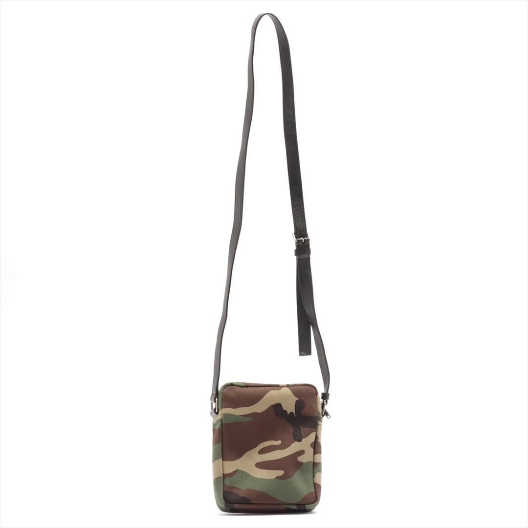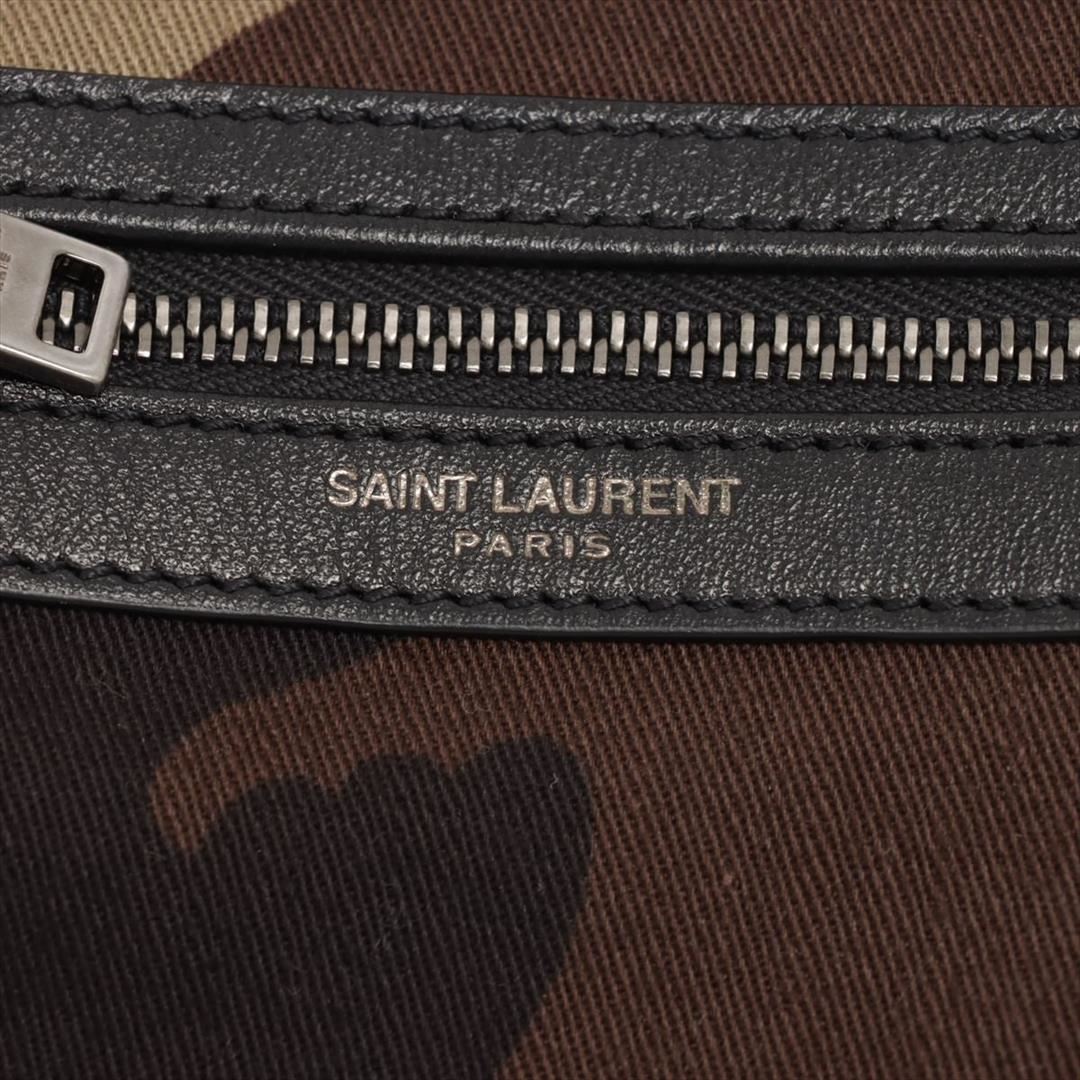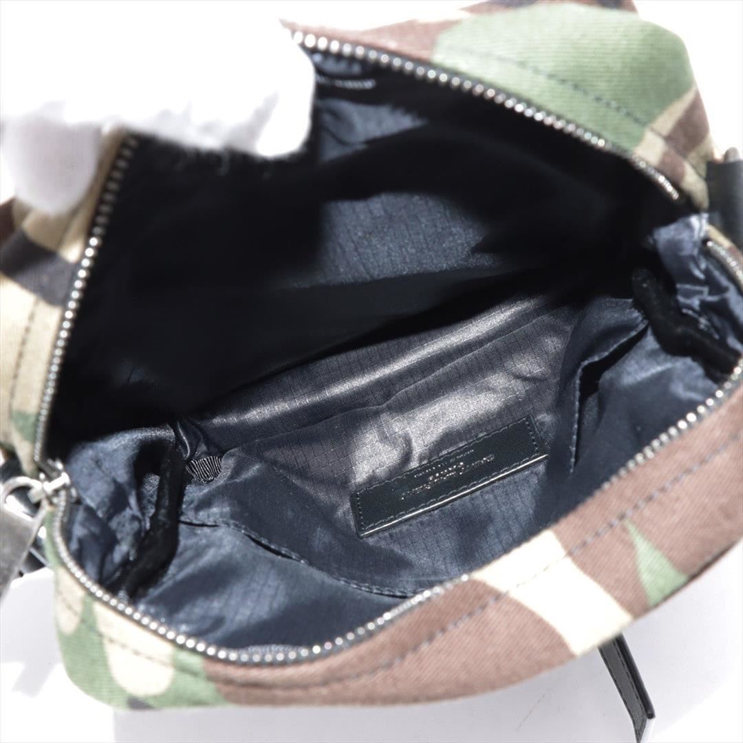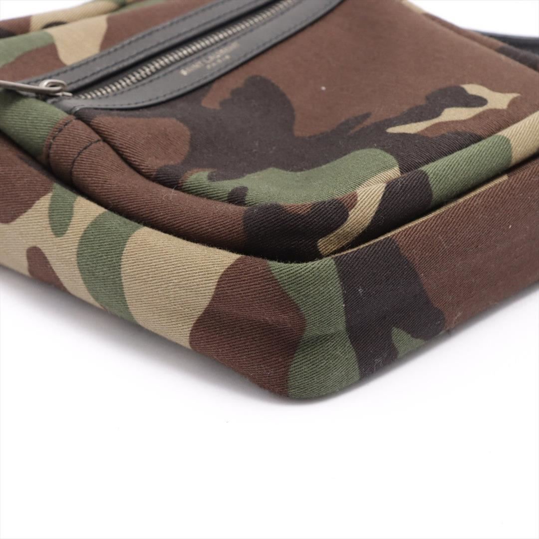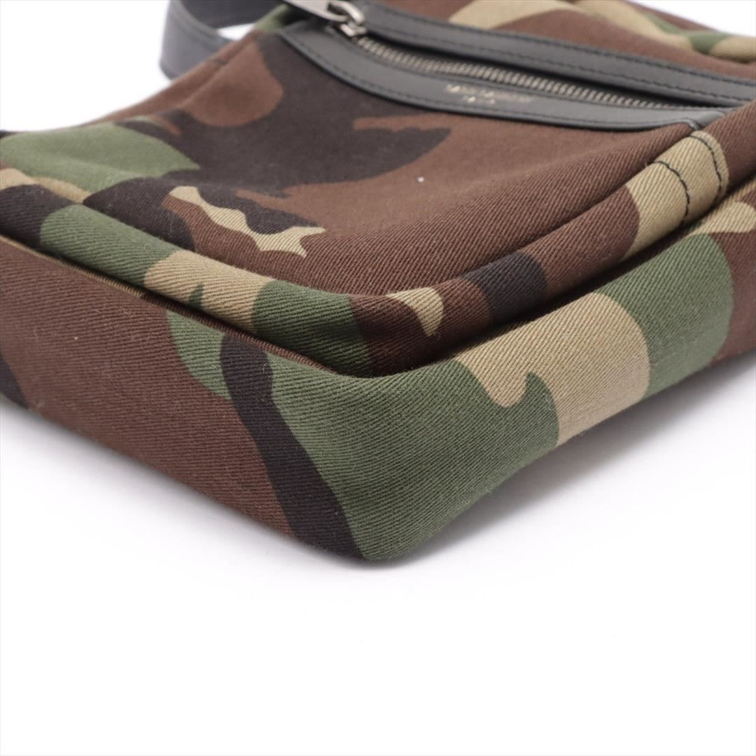 Green Camouflage printed canvas Saint Laurent Sacoche bag with silver-tone hardware, black leather adjustable shoulder strap, front pocket with zip closure, black nylon lining, one flat pocket inside the main compartment and zip closure at top. H19.5cm x W15.5cm x D4.5cm