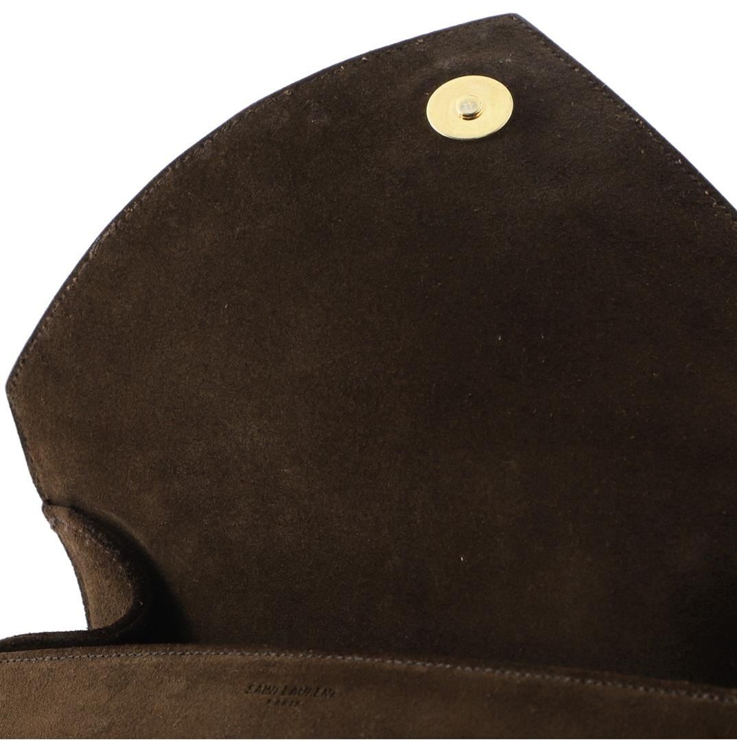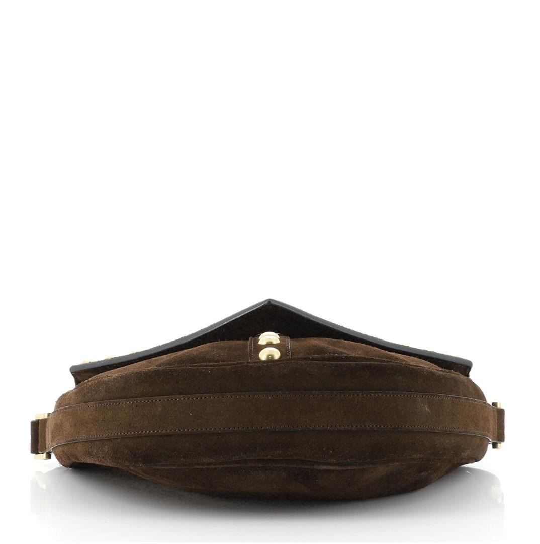 Saint Laurent Y Studs Crossbody Bag Suede Small Brown Condition Details: Wear, darkening and creasing on exterior, strap, underneath flap and in interior. Cracking on strap and opening flap corner wax edges, scratches and discoloration on hardware.