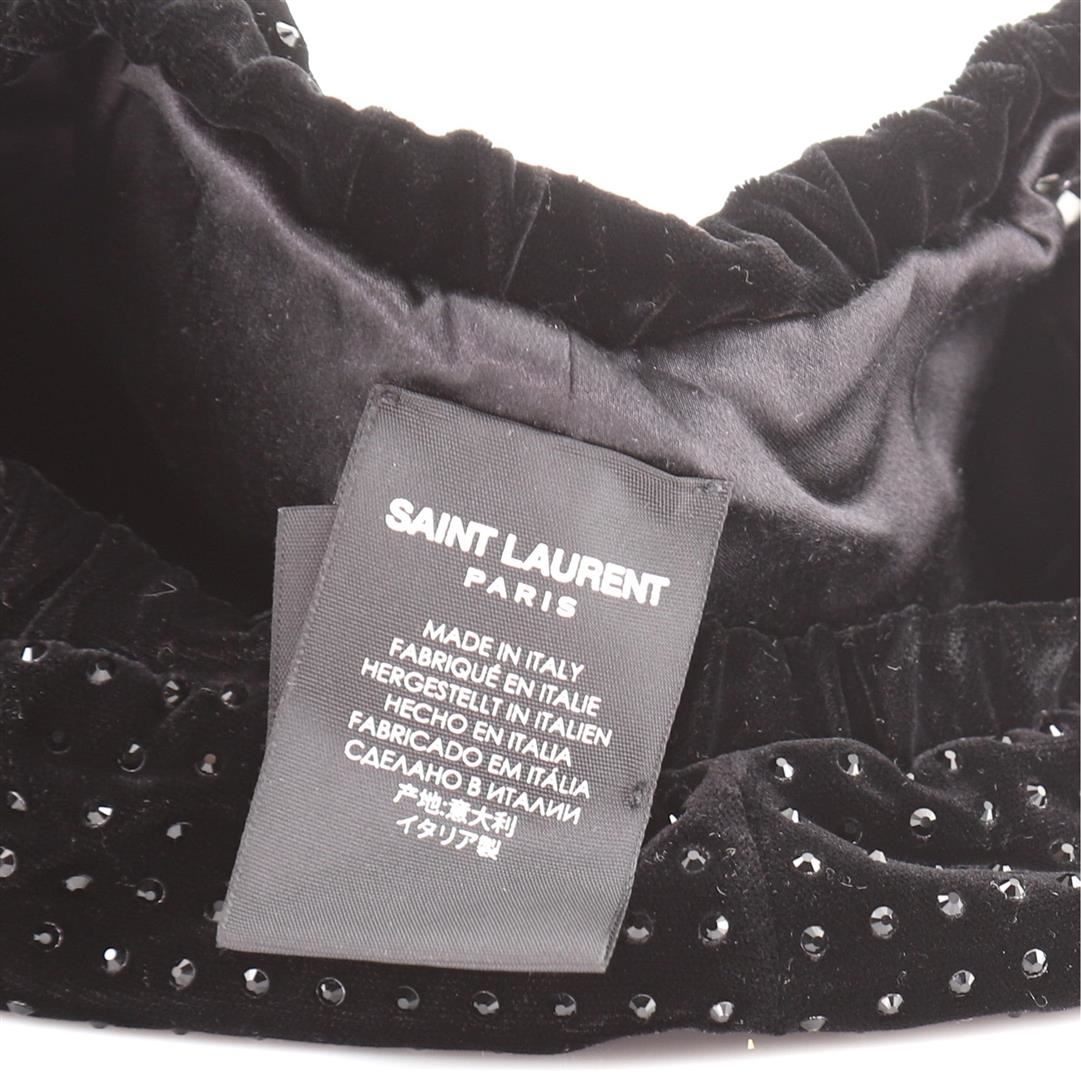 One Saint Laurent YSL Beret Crystal Embellished Velvet Black. Item is sold AS-IS. All available information is listed in the description and shown in the photo. Saint Laurent Beret Crystal Embellished Velvet Black Condition Details: No visible signs on wear. Height 0.5", Width 10.5", Depth 0.25", Strap Drop None