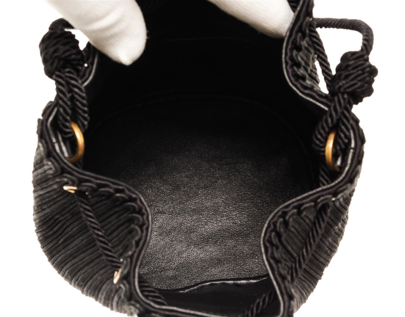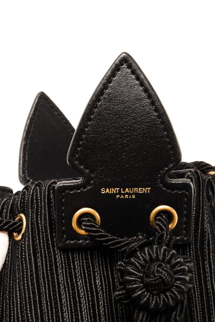 One Saint Laurent YSL Black Canvas Fringe Bucket Bag. Item is sold AS-IS. All available information is listed in the description and shown in the photo. Saint Laurent YSL Black Canvas Fringe Bucket Bag with gold tone hardware, black leather trim, black leather lining, and drawstring closure.