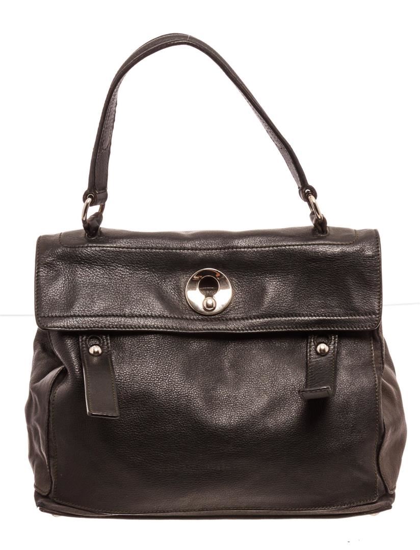 Saint Laurent YSL Black Leather Muse Two Shoulder Bag with silver-tone hardware, black leather, chain-link shoulder strap, leather lining dual interior pockets with card slots, snap closure.
