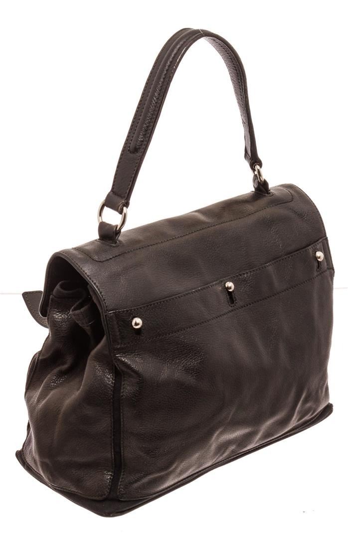 Saint Laurent YSL Black Leather Muse Two Shoulder Bag with silver-tone hardware, black leather, chain-link shoulder strap, leather lining dual interior pockets with card slots, snap closure.
