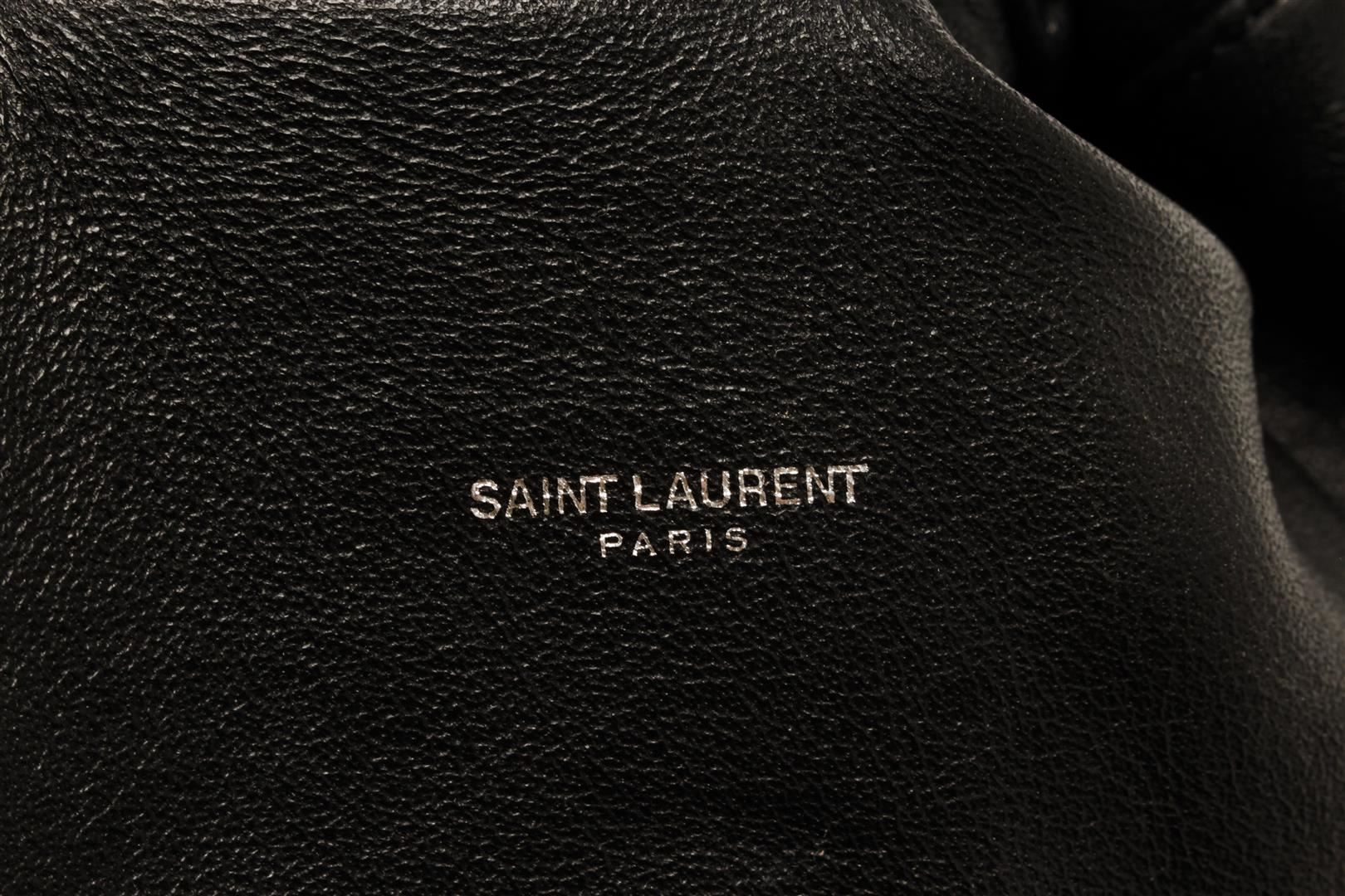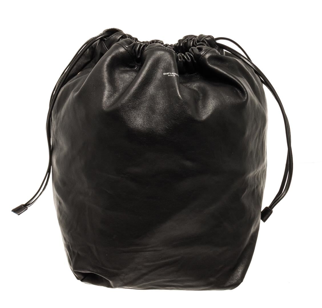 One Saint Laurent YSL Black Leather Teddy Shopping Tote. Item is sold AS-IS. All available information is listed in the description and shown in the photo. Saint Laurent YSL Black Leather Teddy Shopping Tote with silver tone hardware, black leather trim, black microfiber lining, drawstring closure at top.