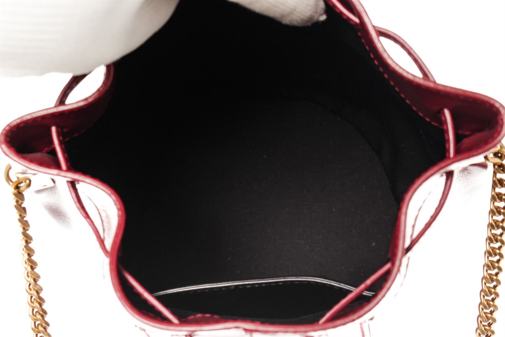 One Saint Laurent YSL Burgundy Smooth Leather Talitha Bucket Bag. Item is sold AS-IS. All available information is listed in the description and shown in the photo. Burgundy leather Saint Laurent Talitha bucket bag with antiqued gold-tone hardware, single adjustable shoulder strap, black nylon lining & single interior pocket and a drawstring closure at front. Height: 10.5" Width: 7" Depth: 7" Shoulder Strap Drop: 16" - 20"