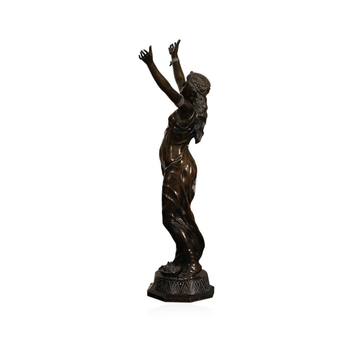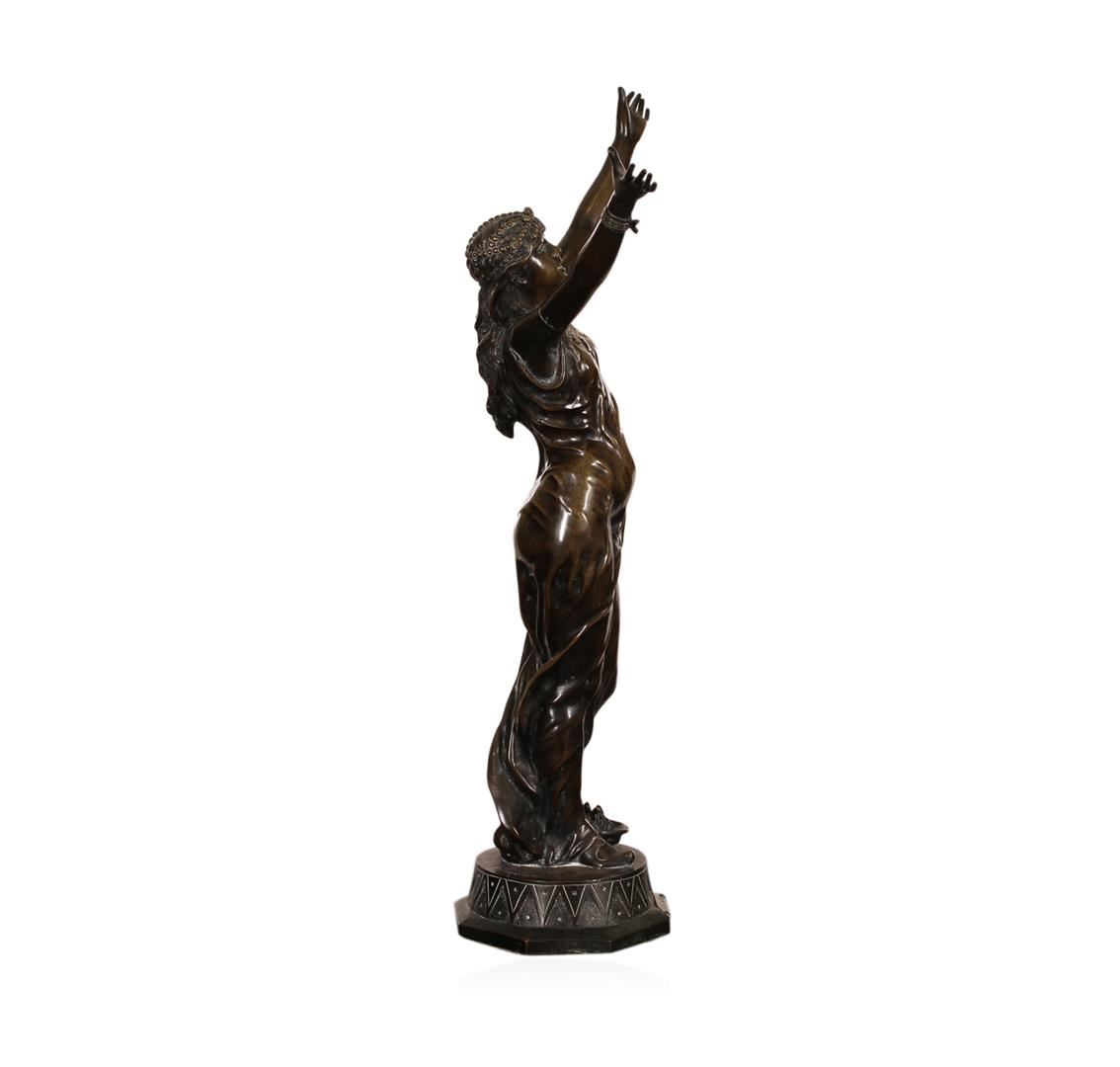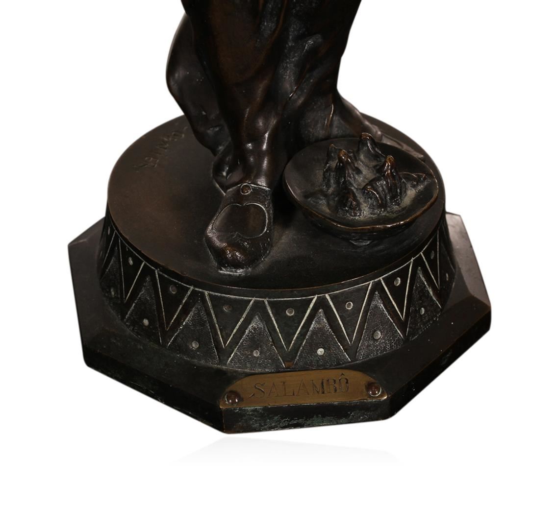 Jean Garnier (1853-1910) French. Salambo, Cast Bronze Sculpture, signed, 21.25" tall, stress crack on backside of her right arm, in good studio condition.
