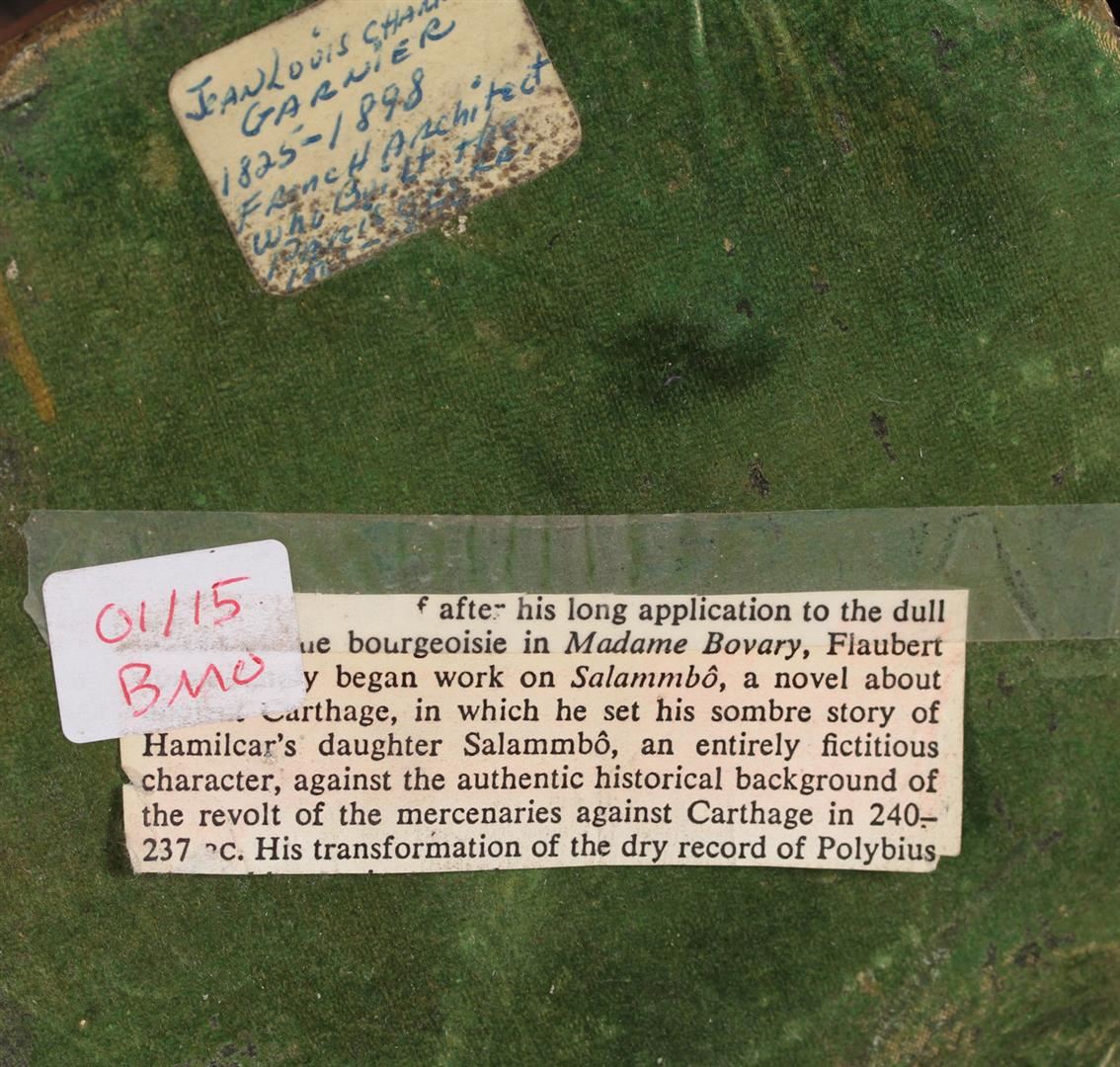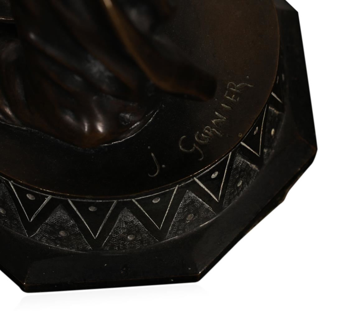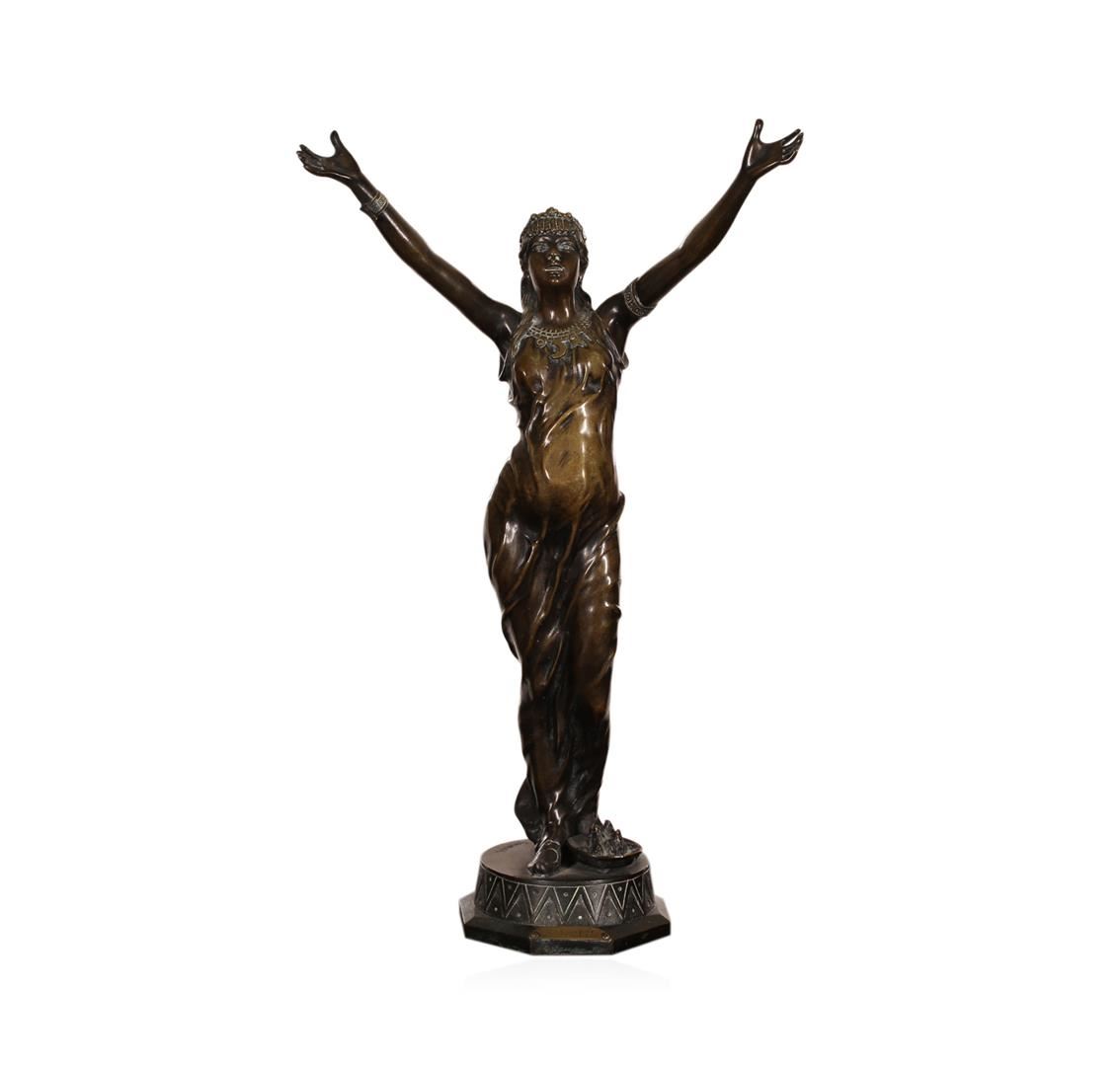 Jean Garnier (1853-1910) French. Salambo, Cast Bronze Sculpture, signed, 21.25" tall, stress crack on backside of her right arm, in good studio condition.