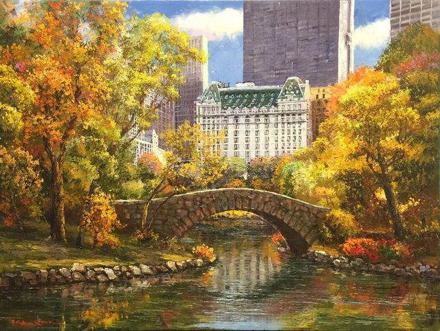 Sam Park "AUTUMN IN CENTRAL PARK" Hand Signed and Numbered Limited Edition Embellished Giclee on Canvas Dimensions: 18 x 24 inches (Note: edition number received may differ from photo)
