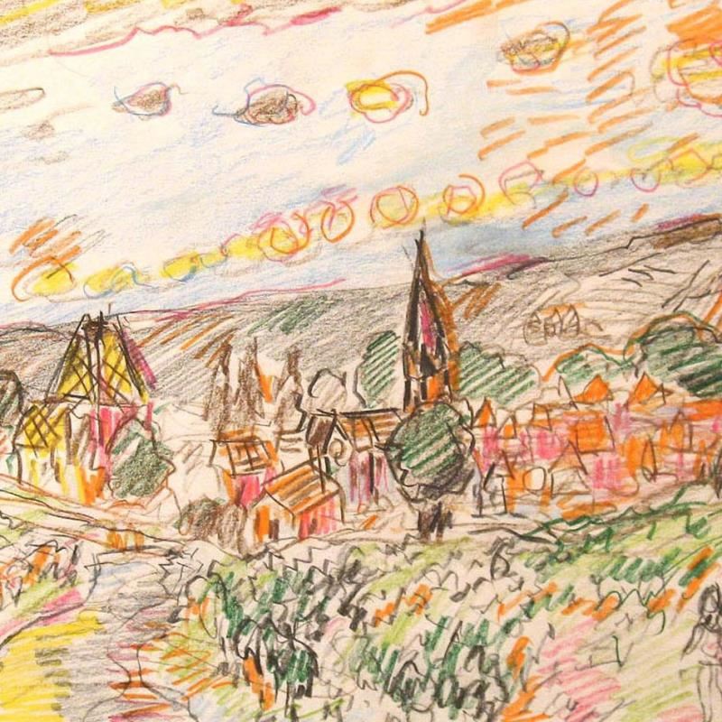 "Santenay, Burgundy" is an original Pencil on Paper by Wayne Ensrud. The piece is hand signed by the artist and comes with a Certificate of Authenticity. Measures approximately 15" x 18".