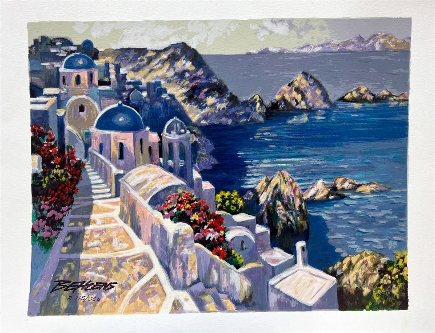 Santorini Afternoon by Behrens, Howard. Limited Hand Signed Serigraph on Paper. Dimensions: 13 x 17. Excellent Condition.