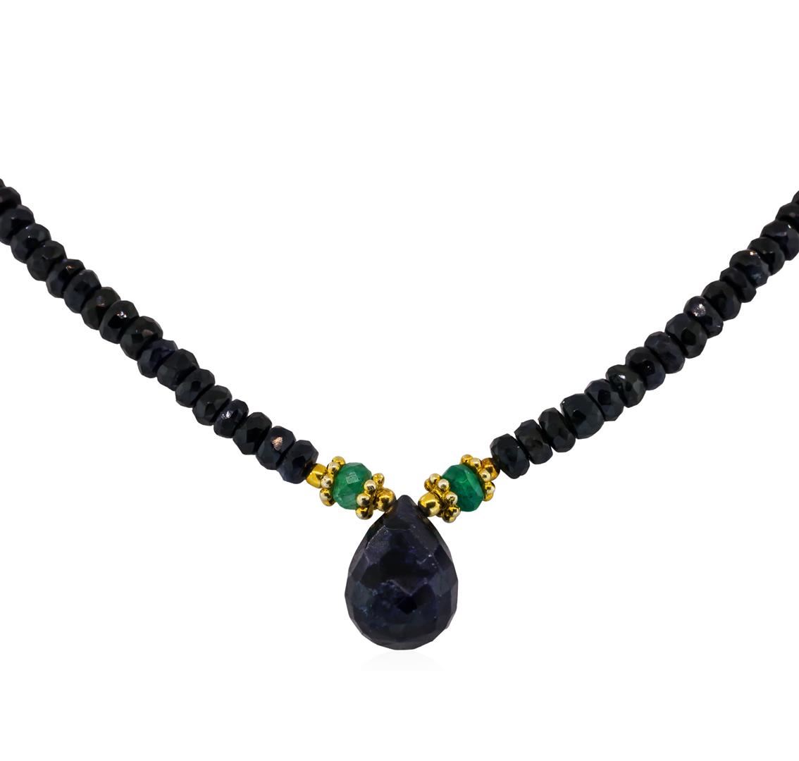 One necklace weighing 15.3gm containing sapphire and emerald measuring 18 inches with silver spring ring clasp.