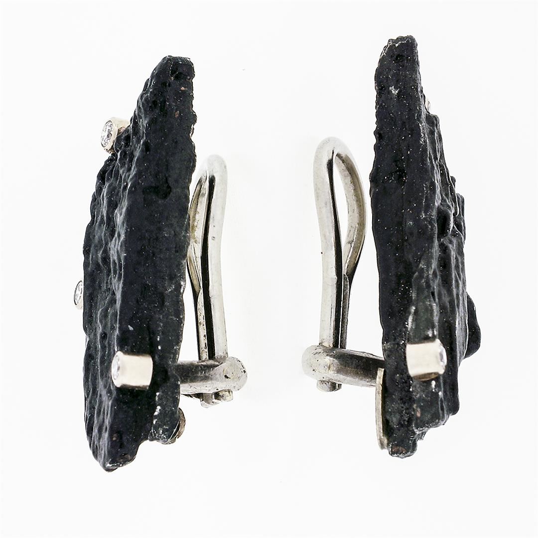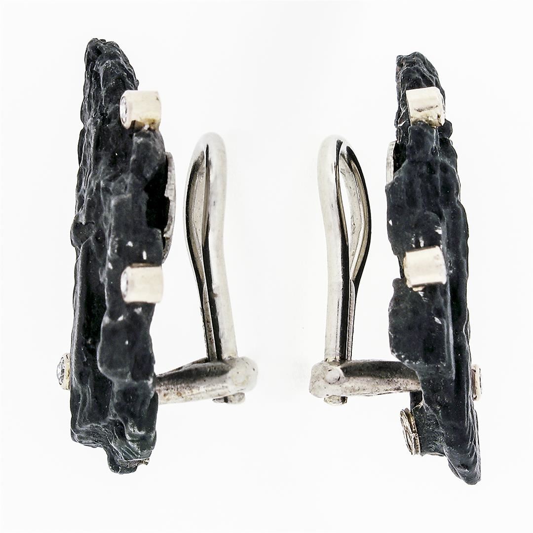 A Sarah Graham solid chrome and 18k white gold earrings, with 6 round brilliant cut natural diamonds (G - VS1 ; 0.12ctw). The earrings measure approximately 25.19x14.20mm and weigh a total of 8.54 grams.