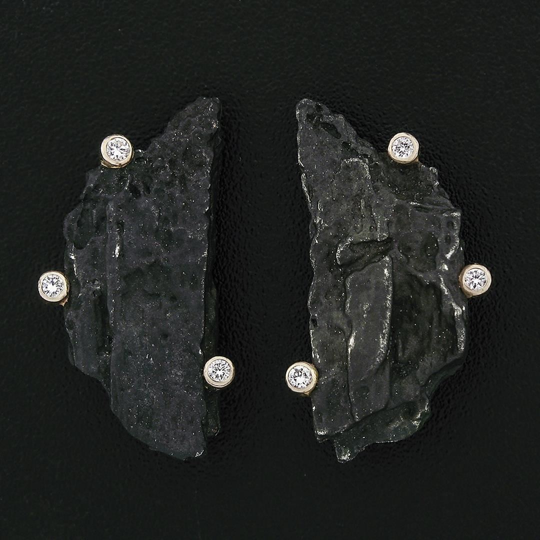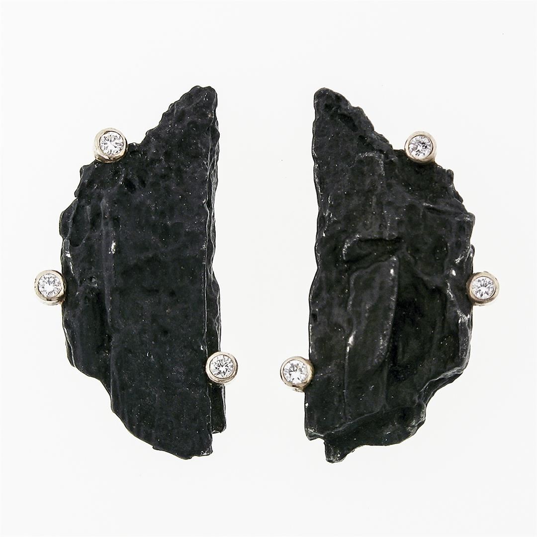 A Sarah Graham solid chrome and 18k white gold earrings, with 6 round brilliant cut natural diamonds (G - VS1 ; 0.12ctw). The earrings measure approximately 25.19x14.20mm and weigh a total of 8.54 grams.