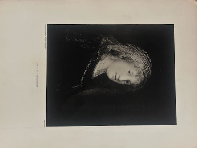 Antique reproduction of Rembrandt etching of a woman of class,on paper 16.5 " x 12.5", image approx. 10x8"