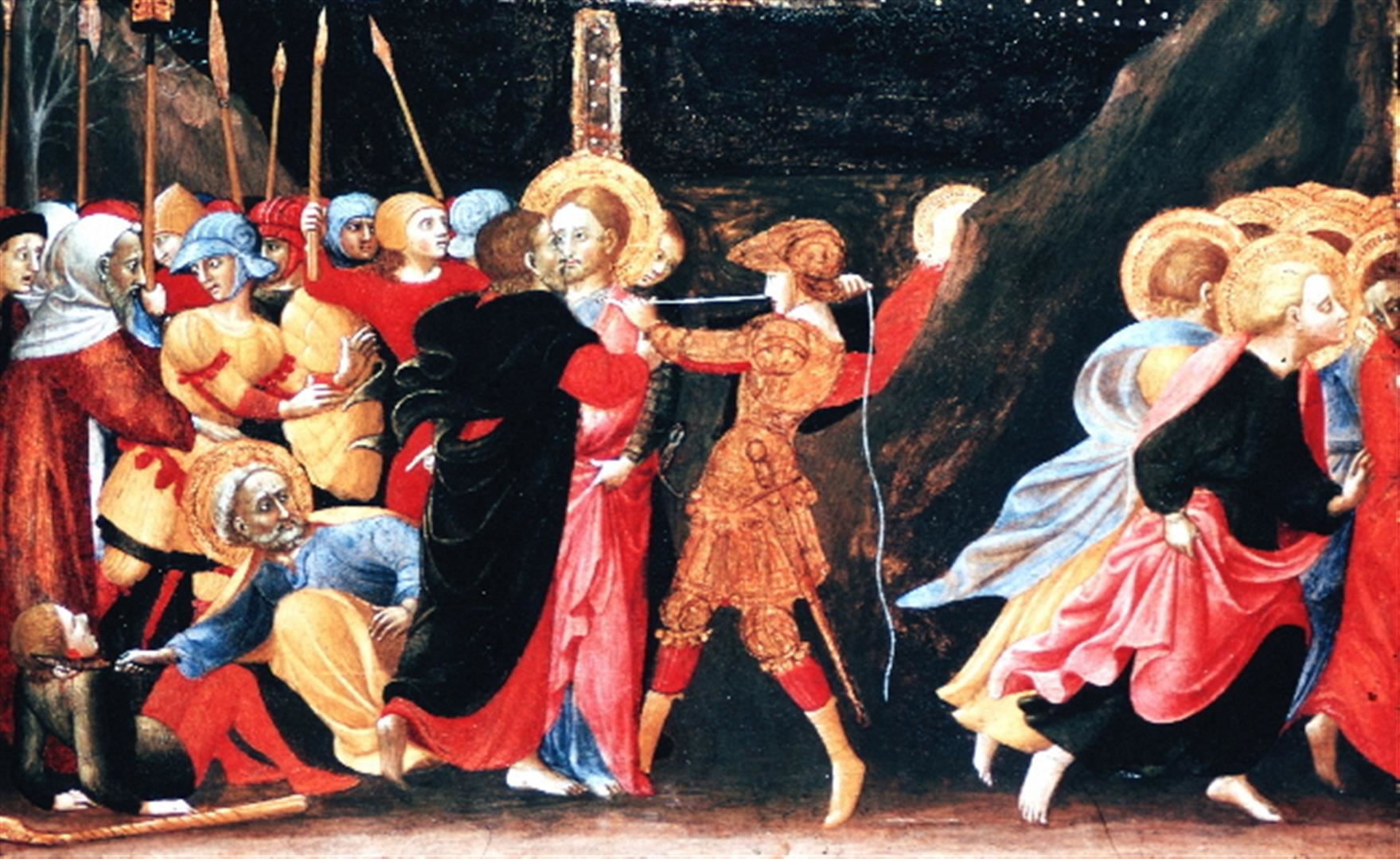 Artist: Sassetta - Title: The Betrayal of Christ - Medium: Fine Art Giclee on Canvas - Image Size: Approximately 20 inches x 12.5 inches - Unframed on Unstretched Canvas - Biography:Stefano di Giovanni di Consolo, known as il Sassetta (ca.1392-1450 or 1451) was an Italian painter who is considered one of the most important representatives of Sienese Renaissance painting. While working within the Sienese tradition, he innovated the style by introducing elements derived from the decorative Gothic style and the realism of contemporary Florentine innovators as Masaccio.