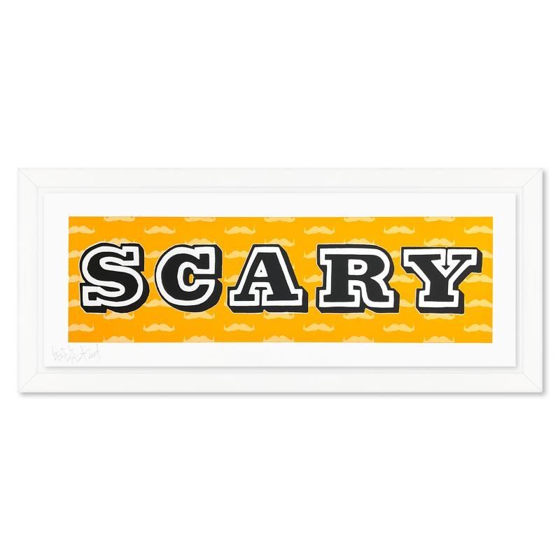 "Scary" is a limited edition screen print on paper by Ben Eine. This piece is numbered and signed by the artist. Comes custom framed with Letter of Authenticity. Measures approx. 36.5" x 17" (frame), 30.5" x 11" (image).