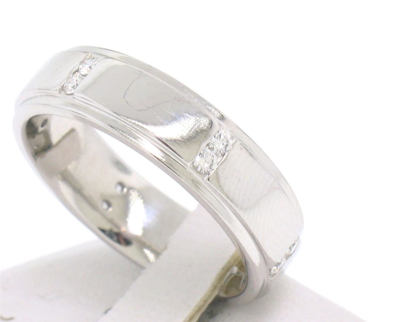 An estate solid platinum band ring by Scott kay, with 12 round brilliant cut natural diamonds (E/F- VS1; 0.24ctw ). The ring is size 9.0, weighs a total of 14.40 grams, and measures 6mm wide.
