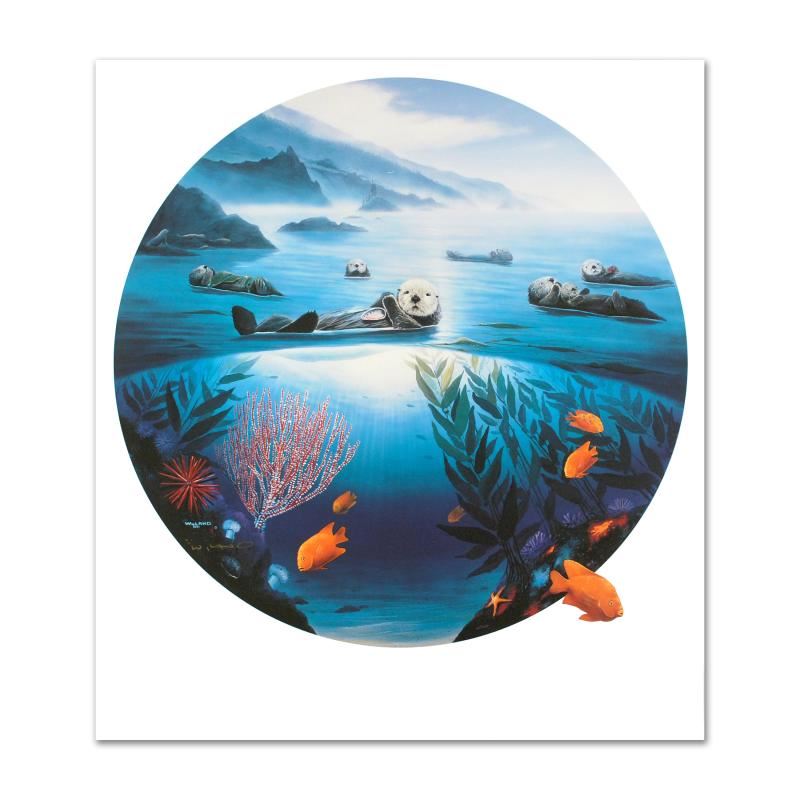 The artist's true love of nature is so clearly conveyed in each of his works with exacting detail. "Sea Otters" is a limited edition lithograph on paper, numbered and hand signed by Wyland! Includes Certificate of Authenticity! Measures approx. 25.5" x 29" (with border), 24" diameter (image).
