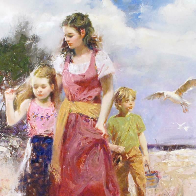 "Sea Spray" is an artist embellished limited edition giclee on canvas by Pino (1939-2010), Numbered and hand signed by the artist. Includes Certificate of Authenticity. Measures approx. 30" x 40" (image). This piece is not stretched.