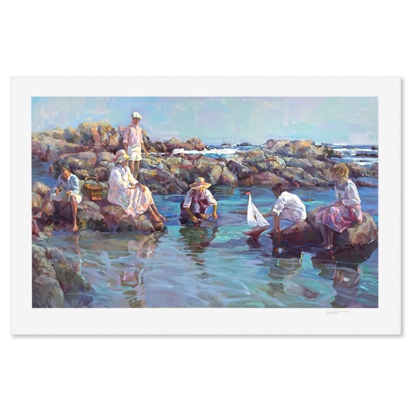 "Seashore Playground" is a limited edition printer's proof serigraph on paper by Don Hatfield, numbered and hand signed by the artist. Includes Letter of Authenticity. Measures approx. 31.5" x 48" (border), 26" x 43" (image).