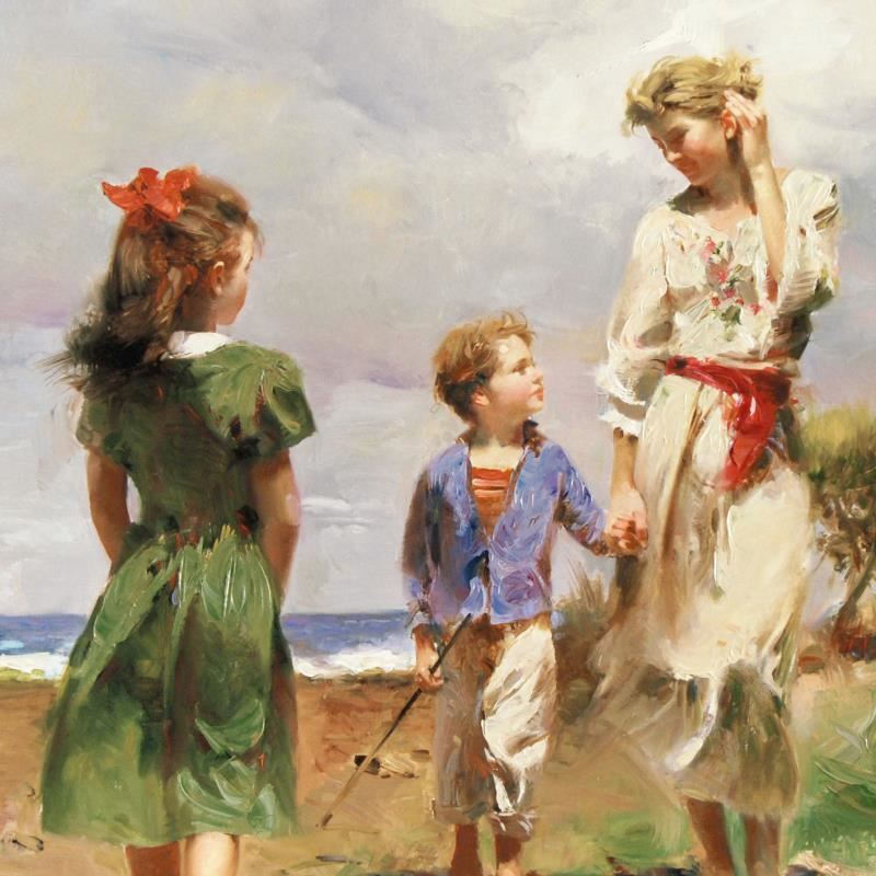 "Seaside Retreat" is a limited edition giclee on stretched canvas that has been hand-embellished by Pino himself, AP Numbered and Hand signed by Pino (1939-2010). Includes Certificate of Authenticity. Measures approx. 28" x 28" (image).