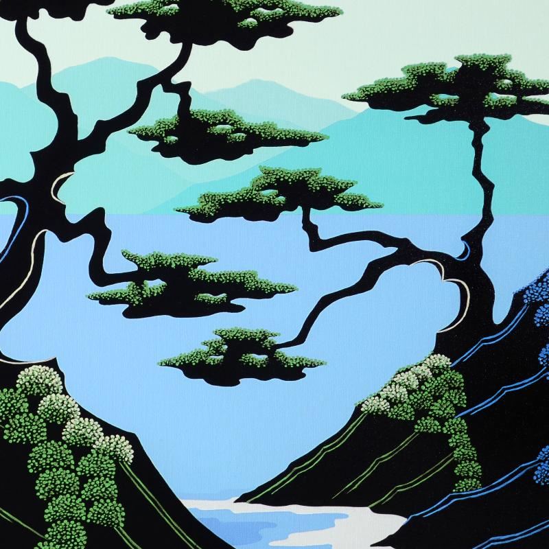 Larissa Holt, a student of distinguished artist Eyvind Earle(1916-2000), uses bold colors and breathtaking scenery to create images of Nature in her own unique style. "Secret Cove" is a limited edition giclee on stretched canvas by Holt, numbered and bearing Holt's authorized signature. This piece comes gallery wrapped. Includes Certificate of Authenticity! Measures approx. 27" x 22" x 1.5" (image).
