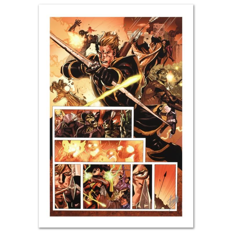 A piece of comic book history, this limited edition, from original art by Leinil Francis Yu, depicts Ronin characters from the marvel universe. After winning the Wizard's Drawing Board Contest, Marvel Comics hired Leinil Francis Yu to work on the Wolverine series. After his run on Wolverine, he moved on to work on Marvel's core X-Men title in 2000. Yu continued to work on other Marvel titles such as Fantastic Four, Ultimate Wolverine vs. Hulk and New Avengers. "Secret Invasion #7" is a limited edition giclee on canvas by Leinil Francis Yu presented by Marvel Comics, numbered and hand signed by the great Stan Lee! Includes Certificate of Authenticity! Measures approx. 18" x 27" (image).