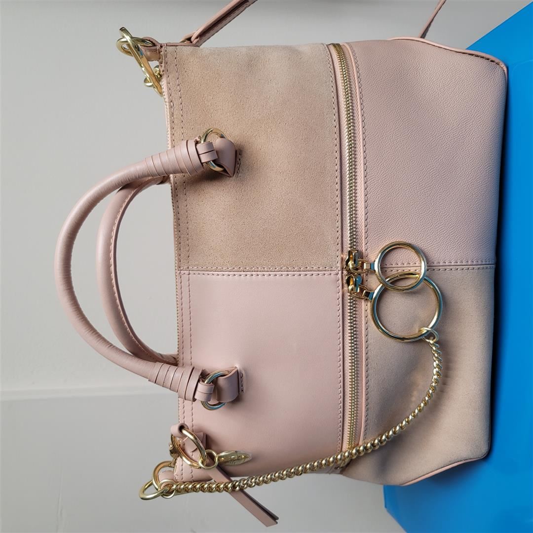 The See by Chloe Emy Shoulder Bag will complement your everyday style. This bag is made of leather, has a top zip closure, dual rolled top handles, removable and adjustabale shoulder strap, front exterior two-way zip pocket, a flat base to provide upright structure, and the lined interior features a back-wall slip pocket. Imported. Measurements: Bottom width: 20in, Depth: 8.75 in, Height: 13in, Strap Length: 52in, Strap Drop: 21.5in, Handle Length: 21.5in, Handle Drop: 9.5in, Weight: 1lb 14.4oz.