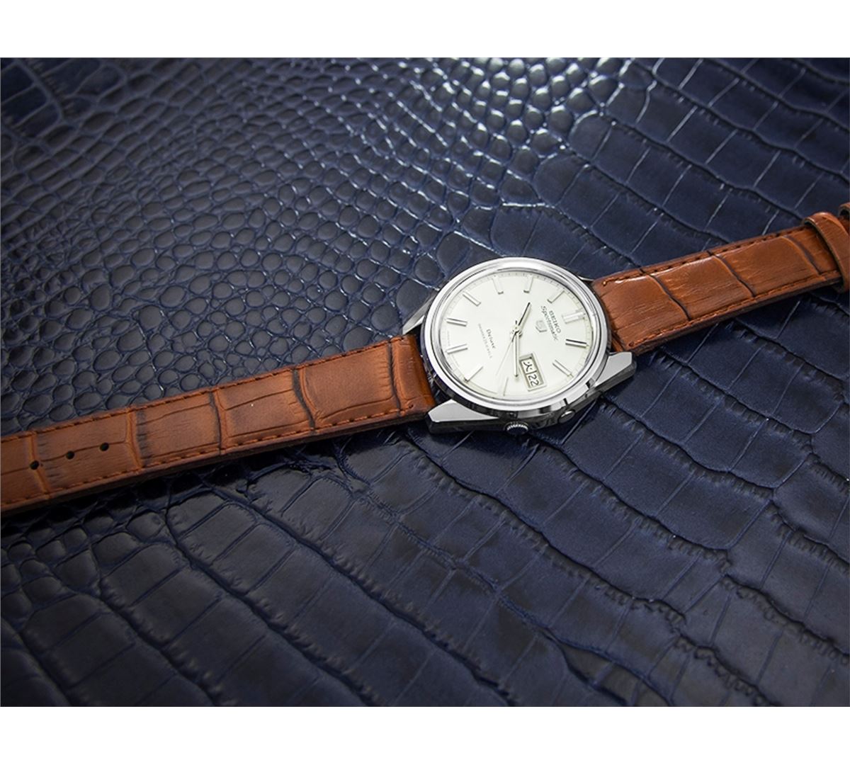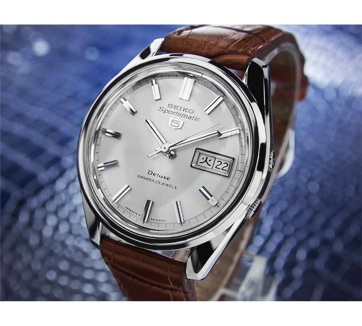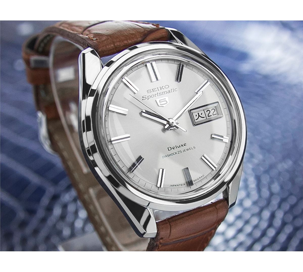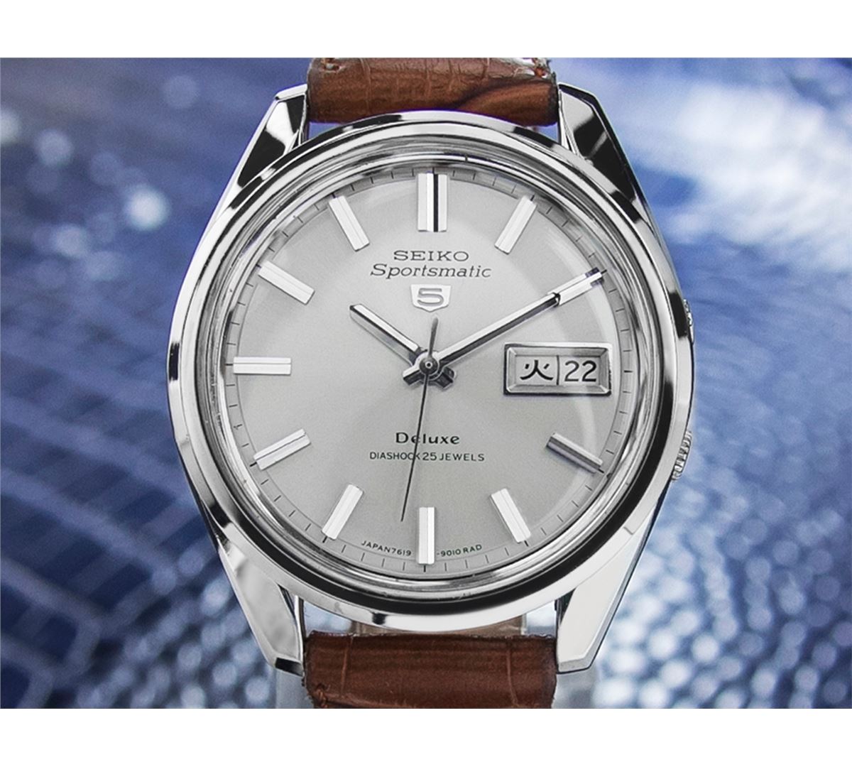 Seiko Sportsmatic Stainless Steel Automatic Watch. Brand: SEIKO. Model: SPORTSMATIC. Movement: Automatic. Case Material: Stainless Steel. Crystal: ACRYLIC. Case Size: 35. Band: NEW LEATHER BAND.