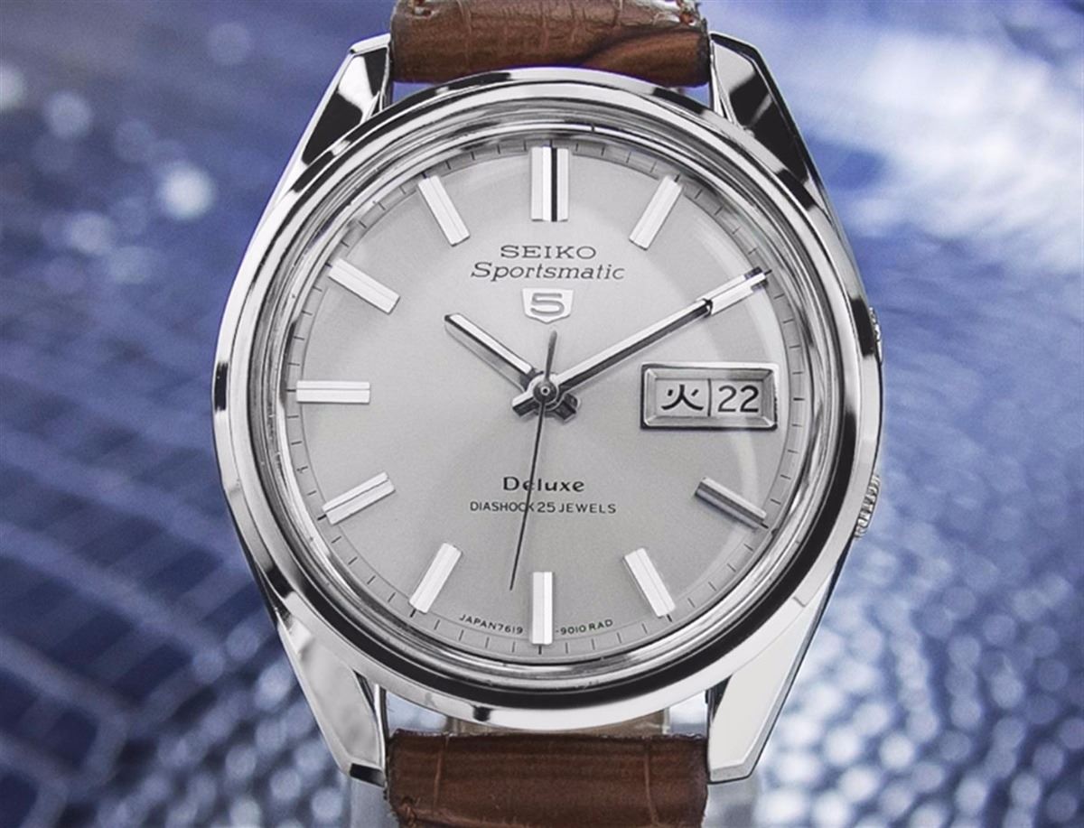 Seiko Sportsmatic Stainless Steel Automatic Watch. Brand: SEIKO. Model: SPORTSMATIC. Movement: Automatic. Case Material: Stainless Steel. Crystal: ACRYLIC. Case Size: 35. Band: NEW LEATHER BAND.