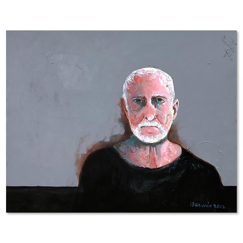 "Self Portrait" is an original painting on stretched canvas by Milton Berwin (1925-2023), hand signed by the artist. Includes Letter of Authenticity. Measures approx. 16" x 20" (image).