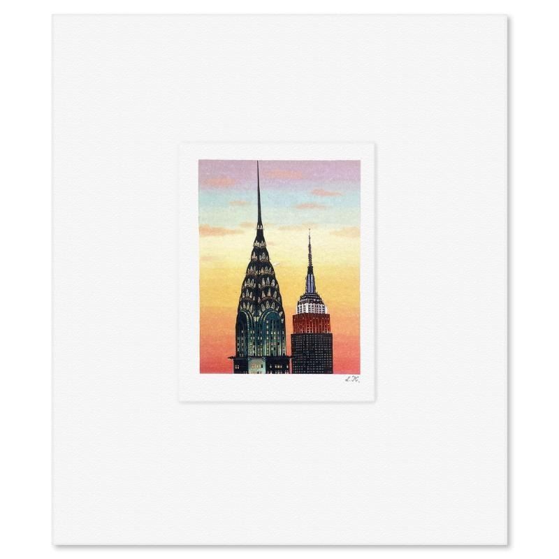 "Sentinels" is a limited edition lithograph on paper by Liudmila Kondakova, hand signed by the artist. Includes Letter of Authenticity. Measures approx. 7" x 6" (border), 3" x 2" (image).