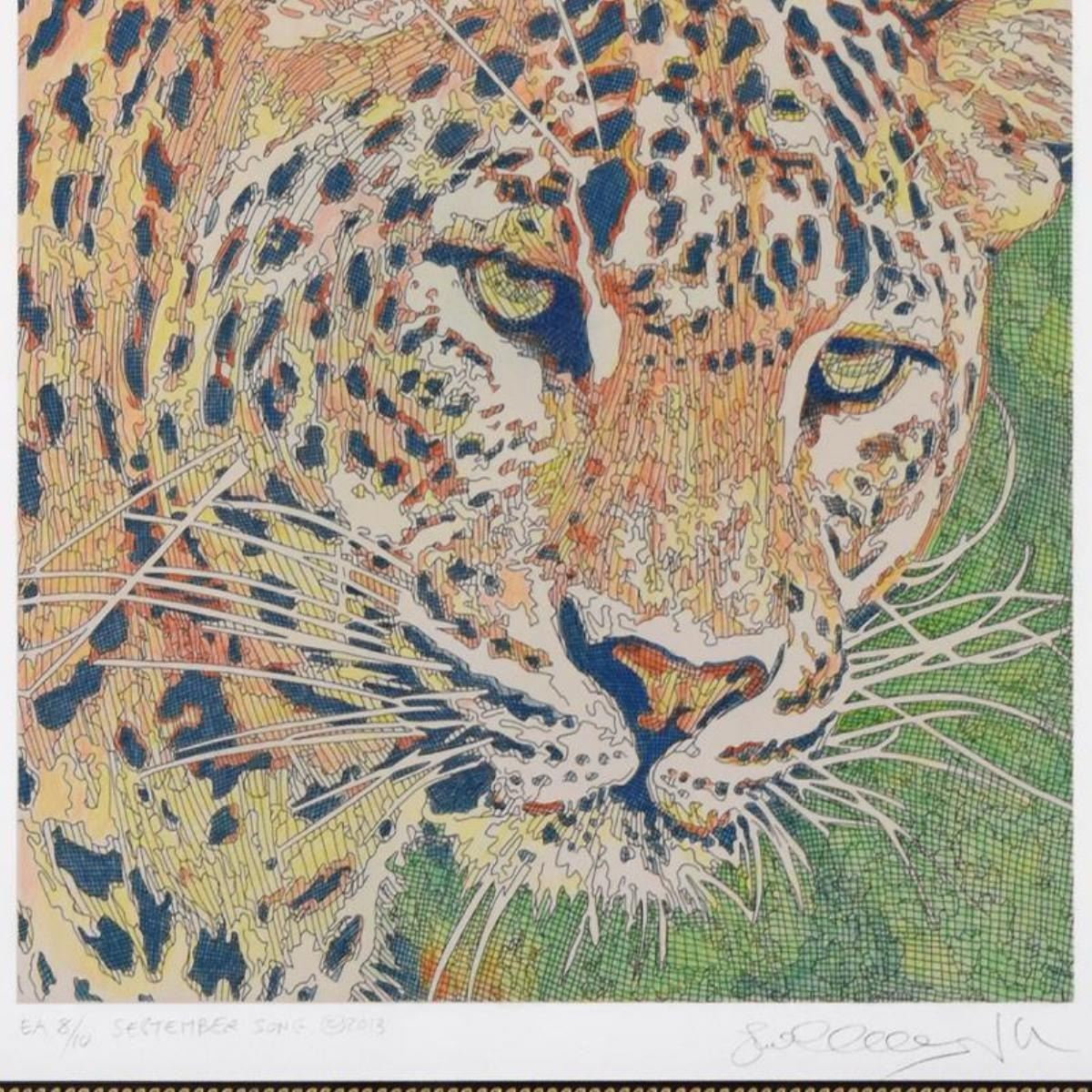 "September Song" is a limited edition hand colored etching on paper by Guillaume Azoulay. This piece is dated (2013), EA numbered 8/10 and hand signed by the artist. Includes Certificate of Authenticity. Measures approx. 31" x 33.5" (with border), 13.5" x 16" (image).