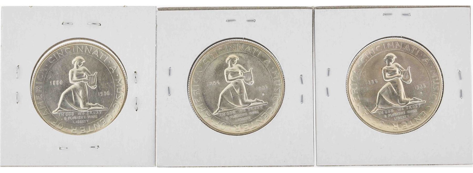 One Set of (3) 1936-P/D/S Cincinnati Music Center Commemorative Half Dollar Coins.