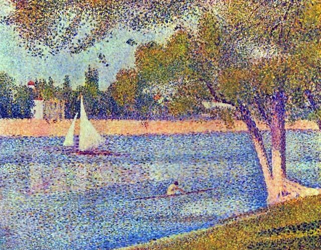 Artist: Georges Pierre Seurat - Title: The Seine at the Grand Jatte, Spring - Medium: Fine Art Reproduction Giclee on Canvas - Image Size: Approximately 15.5 inches x 20 inches - Unframed on Unstretched Canvas - Biography: Georges Pierre Seurat (2 December 1859 - 29 March 1891) was a French post-Impressionist artist. He is best known for devising the painting techniques known as chromoluminarism and pointillism. While less famous than his paintings, Seurat's conte crayon drawings have also garnered a great deal of critical appreciation.