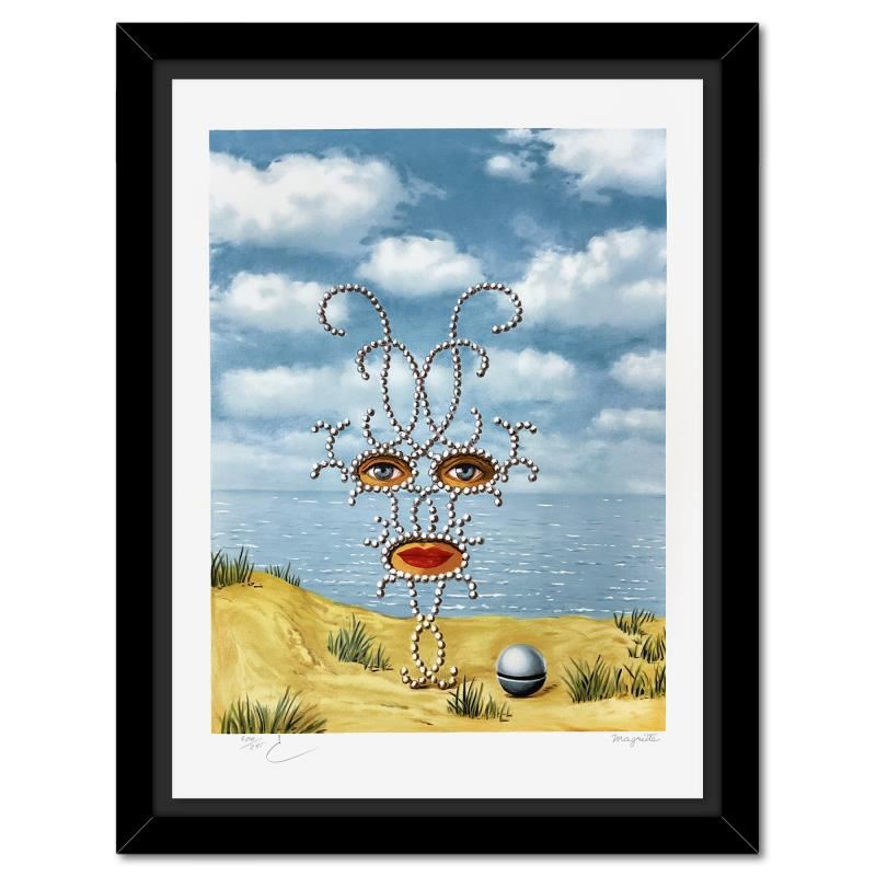 "Sheherazade" is a limited edition lithograph by Rene Magritte (1898-1967). This piece is numbered 200/275 and bears the dry stamps of the Magritte Foundation & ADAGP (Society of Authors in the Graphic and Plastic Arts) and is signed by the President of the Magritte Foundation, Charly Herscovici. This piece comes custom framed. Includes Certificate of Authenticity. Measures approx. 23.5" x 26" (frame), 17.5" x 20" (image).