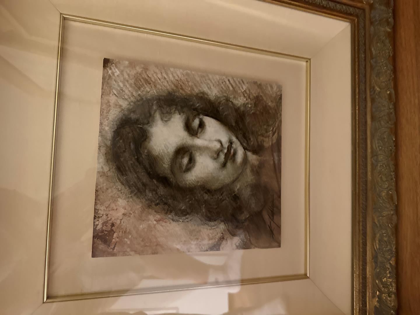 Exquisitely framed, this 1995 Richard Franklin original drawing on canvas measures 24x22.75"and 9x9.5" image size.