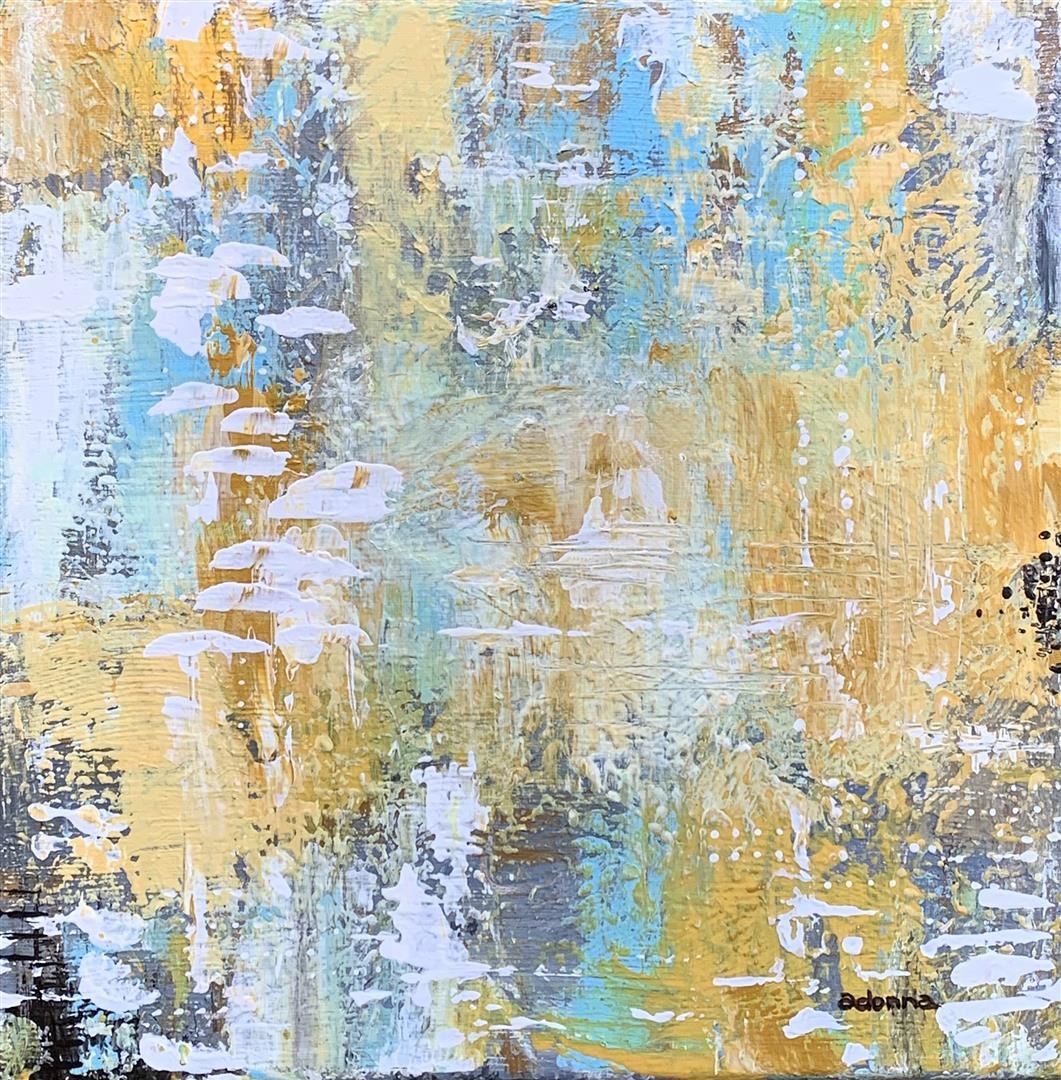 Acrylic on stretched canvas by Adonna. 12 x 12. Bright and cheerful this floral abstract has great energy, and yet it calms the soul.