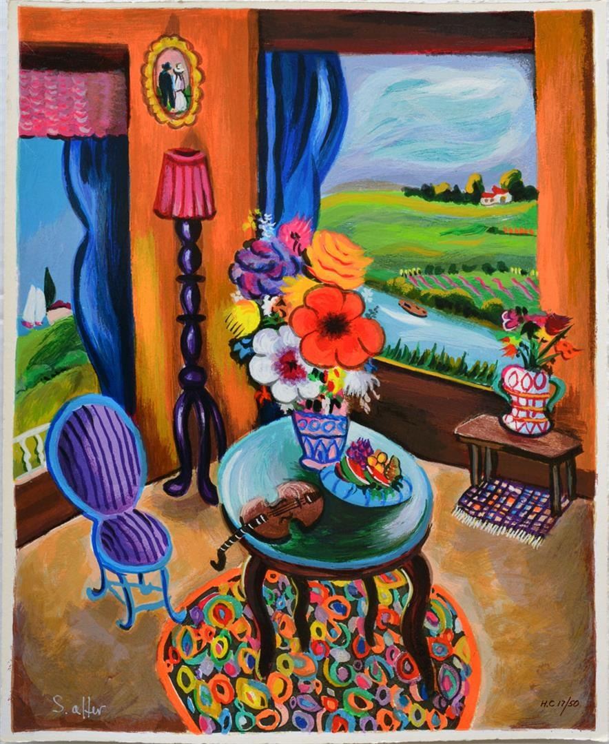 Artist: Shlomo Alter - Title: Expectation - Medium: Serigraph on Fine Art Paper - Signature: Hand-signed by the Artist - Limited Edition: HC 50 - Paper Size: Approximately 18 inches x 14.75 inches - Unframed - Details: This work comes with a Certificate of Authenticity - Biography: Shlomo Alter was born in Romania to a family of restaurateurs. He emigrated to Israel in 1948 and during high school he started to study painting under the well known artist Aaron Avni. Some of his early works appeared in UNICEF'S world touring exhibition of young artists. Altar's works are influenced by his early recollections of the well dressed people who gathered in the courtyard of his parent's restaurant in Bucharest to eat and drink, to dance of Gypsy bands, and to enjoy the convivial atmosphere. With a touch of optimism and good humor Alter's art reflects life at its core, an antithesis to the Nazi regime that shattered his childhood happiness. His paintings are like stage set on which the objects relate to each other through a glow of colors and lines - a frozen moment in time, a dynamic stillness prior to a burst of action. His style can best be compared to that of the Expressionists. He uses color to give direct expression to his ideas in influence by the famous, particularly Matisse and Duty.